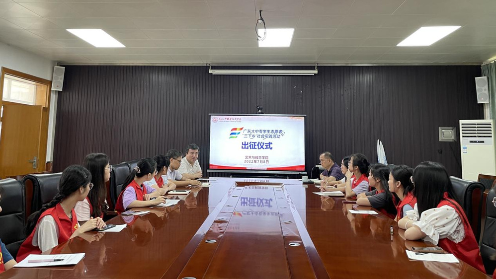 7月8日上午,艺教学院在敬业楼507会议室举行了大学生“三下乡”社会实践活动出征仪式,仪式由学工办主任谭武主持,学院党总支沈彬书记、叶宜同副书记、“三下乡”社会实践志愿服务队的指导老师以及全体队员参加了出征仪式。
