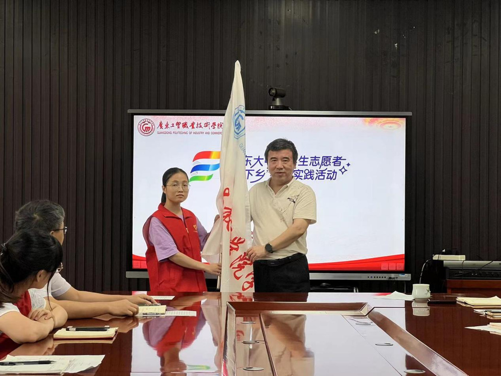 沈彬同志向助童益民“三下乡”社会实践志愿服务队授旗