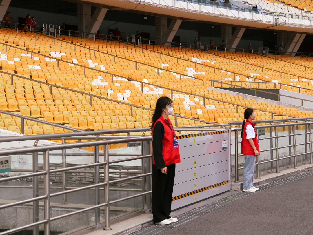场边秩序也是一项重要的工作内容,志愿者们有序引导入场观众到指定区域就座,并维持好现场秩序。