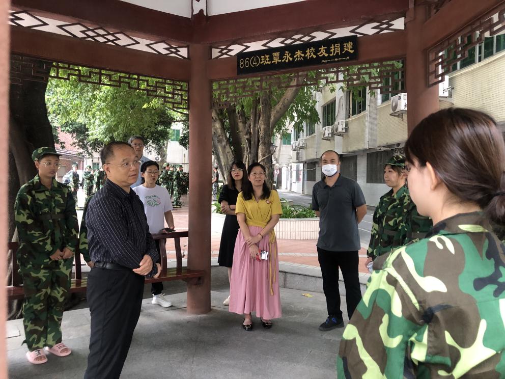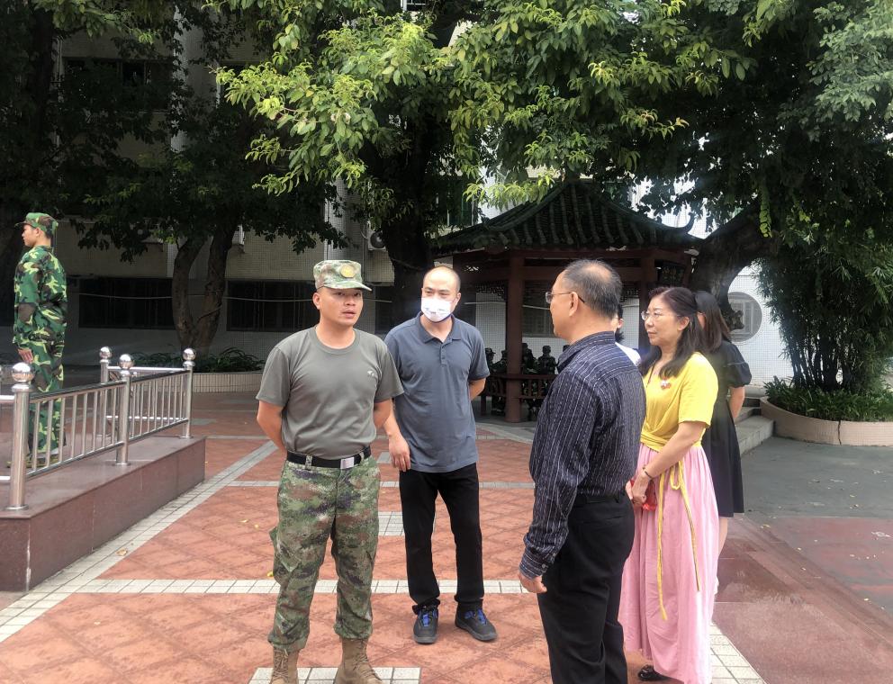 走访期间,叶宜同与荔湾校区军训营参谋长谢伟超进行深入交流,了解新生军训情况,并向全体带训官兵表示真诚的感谢和敬意。