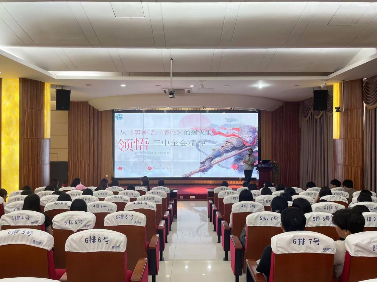 本次宣讲会不仅是一次对三中全会精神的学习,更是一次关于文化自信与创新发展的深刻思考。通过对《黑神话:悟空》的分析,生动阐释了文化自信的时代内涵和创新发展的战略意义。同学们纷纷表示,将以此次学习为契机,进一步增强文化自信,推动文化创新,牢记新时代中国特色社会主义赋予的责任和使命,为实现中华民族的伟大复兴贡献自己的力量。