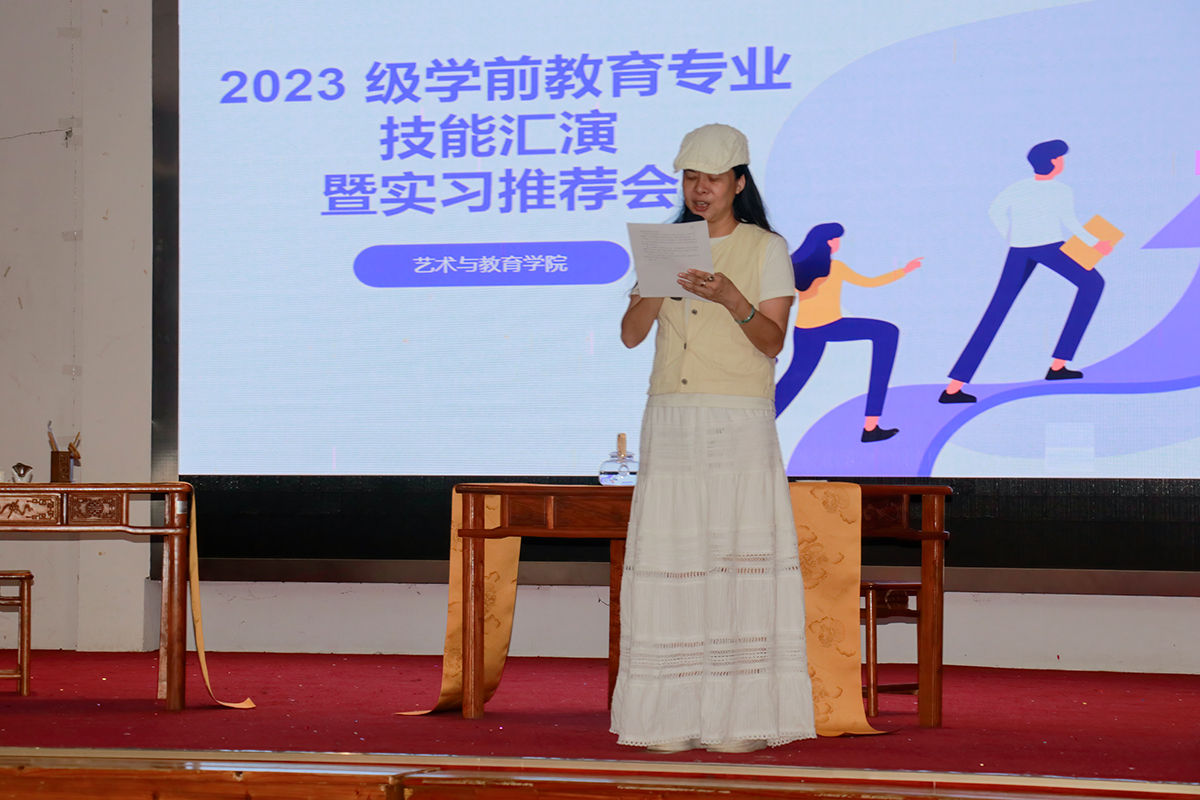 活动伊始,学前教育专业技能汇演正式拉开帷幕。艺术与教育学院院长张幼晖致辞,强调了我院“以德为先、能力为重、实践为基”的教育理念,致力于培养有爱心、懂专业、擅创新的高素质幼教人才,同时对学生提出了殷切的希望。此次的汇演暨实习推荐会,也致力于搭建校企合作、供需对接的桥梁,深化实习、就业一体化的培养模式。
