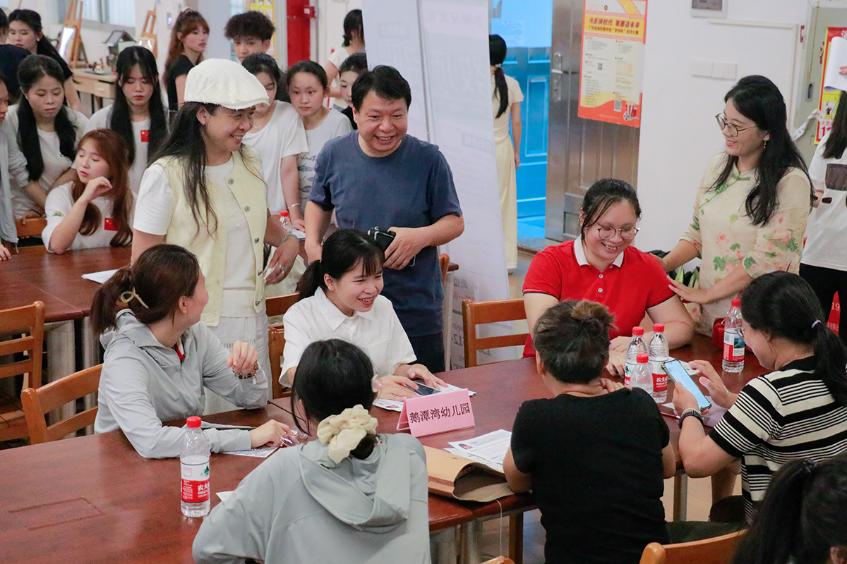 活动现场,鹅潭湾幼儿园、荔湾区新苗幼儿园、广州市增城区启航幼儿园、广东贝津教育有限公司、广州市方程文化有限公司、东莞市启航教育投资有限公司、光彩人生(佛山顺德)教育文化服务中心、广州心斯艺术中心有限公司等知名幼儿园、企业齐聚一堂,为学前教育专业学生提供了涵盖幼儿教师、早教指导师、课程顾问、幼教行政等多个实习岗位,充分满足了不同学生的职业发展需求。