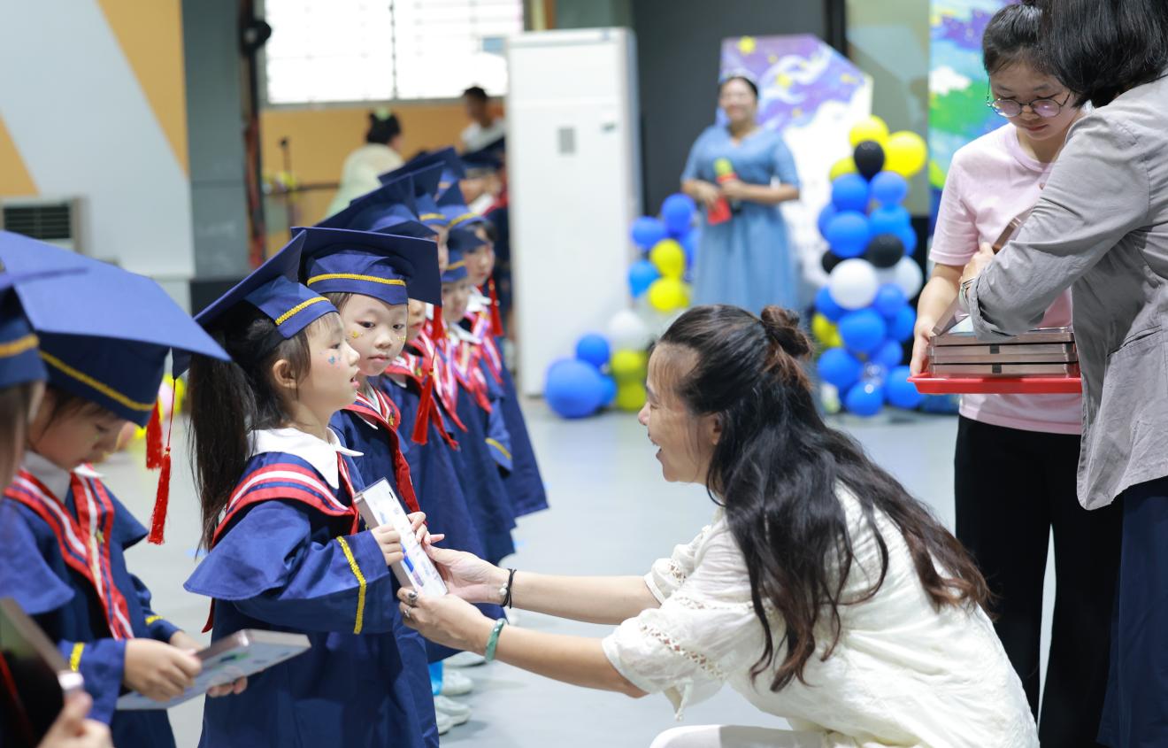 为确保毕业典礼顺利进行,艺术与教育学院安排院长张幼晖、办公室主任刘嘉等人与童星幼儿园展开了紧密的合作。通过多次沟通协调,共同商讨完善了活动流程、安全保障、后勤服务等工作细节。在活动筹备和举行过程中,艺教学院工作人员积极配合幼儿园的需求,协调有关部门提供必要的设施设备和技术支持。无论是场馆场地的整理、音响灯光的调试,还是舞台的搭建与装饰,都安排专业人员协助完成,确保每一个环节都精益求精。同时,校区还加强了校园安全管理,安排安保人员在关键区域值守,为活动的安全有序进行提供了有力保障。从整洁的操场到温馨的礼堂,每一处都凝聚着广东工贸对孩子们的关爱与支持。毕业典礼活动现场充满了欢声笑语,各项活动有序开展,张幼晖还受邀出席了活动,为童星幼儿园大班的毕业同学们颁发了毕业证书。