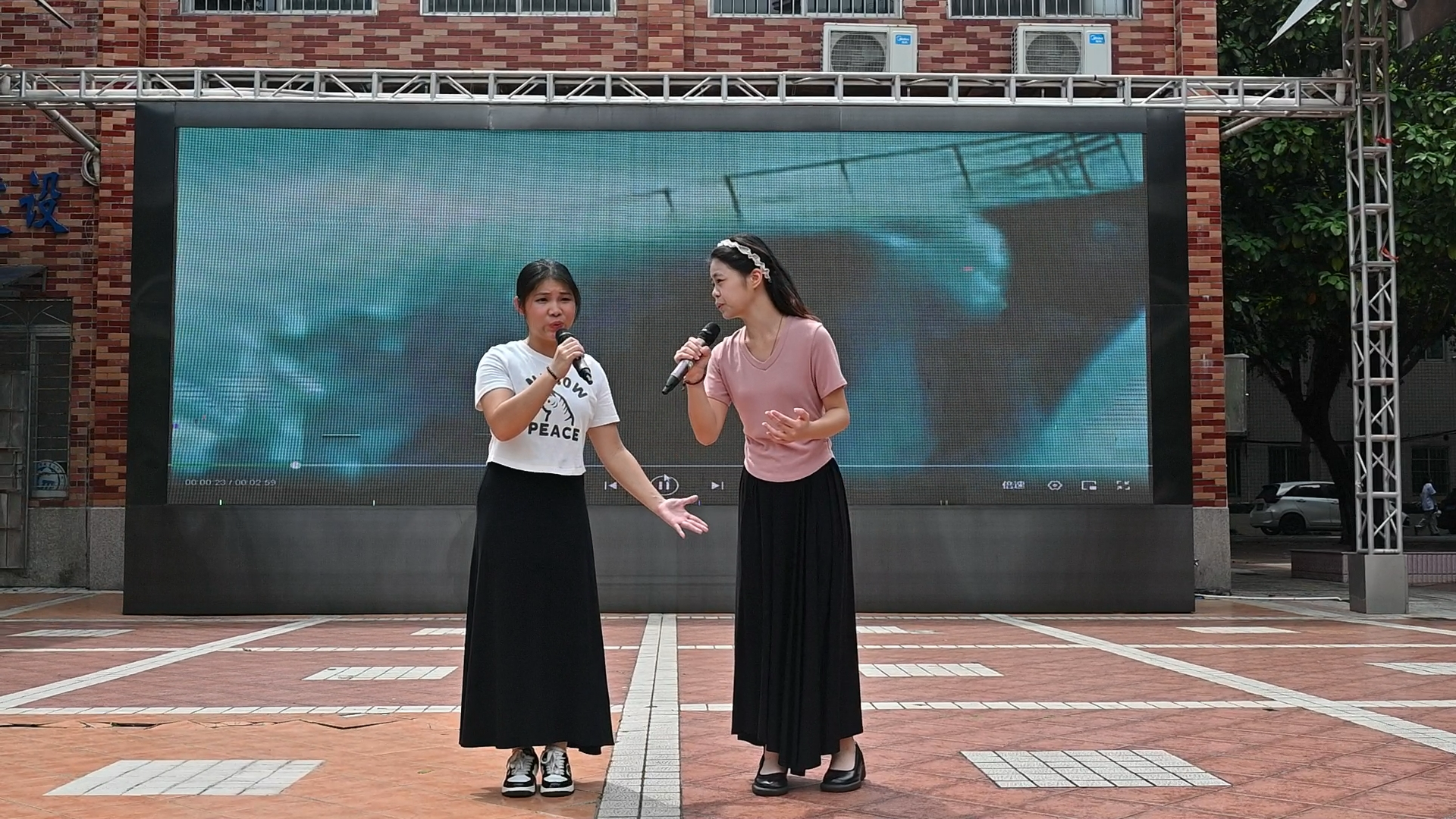 活动于12时准时启幕,当《我和我的祖国》悠扬旋律响起,全场瞬间被卷入情感的浪潮。领唱学子清亮的嗓音划破天际,“我和我的祖国,一刻也不能分割”的歌词如星火燎原,千余名师生自发起立,用最真挚的歌声接力传唱。从激昂的副歌到温柔的尾声,歌声穿透教学楼、回荡在操场,连路过的师生也驻足加入,形成“万人同唱一首歌”的动人画面。艺术与教育学院2023级学生胡思情在合唱后眼眶微红:“平时听这首歌只觉得好听,今天和全院老师同学一起唱,才真正懂了‘一刻也不能分割’的重量。”