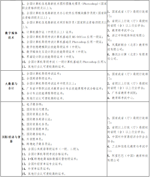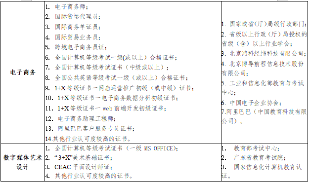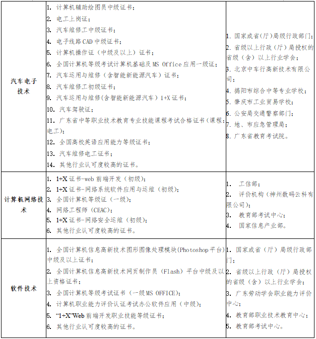 1. 广东省教育考试院颁发的专业技能课程等级证书;