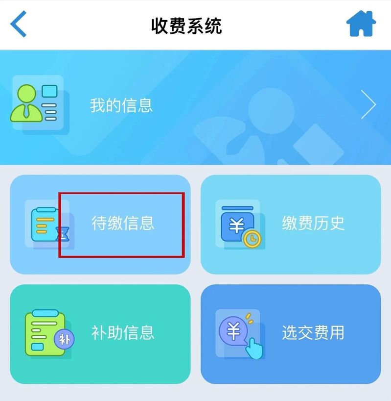 4.绑定后,进入缴费页面,“待缴信息”;