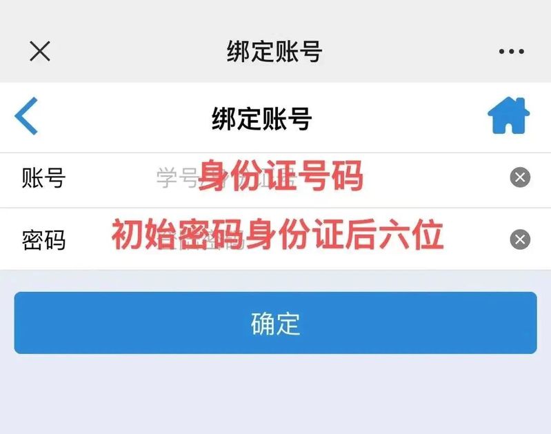 3.绑定新用户,账号为身份证号码,密码为身份证号码最后6位;